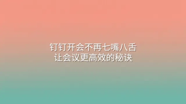 钉钉开会不再七嘴八舌:让会议更高效的秘诀