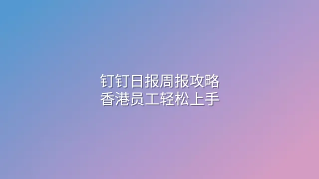 钉钉日报周报攻略:香港员工轻松上手