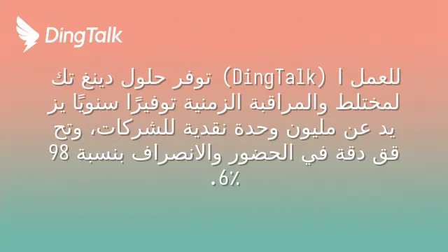 توفر حلول دينغ تك (DingTalk) للعمل المختلط والمراقبة الزمنية توفيرًا سنويًا يزيد عن مليون وحدة نقدية للشركات، وتحقق دقة في الحضور والانصراف بنسبة 98.6٪