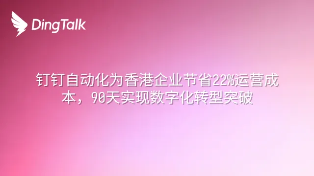钉钉自动化为香港企业节省22%运营成本,90天实现数字化转型突破