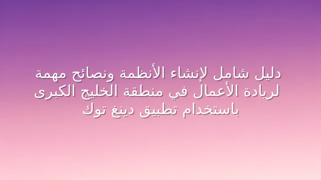 دليل شامل لإنشاء الأنظمة ونصائح مهمة لريادة الأعمال في منطقة الخليج الكبرى باستخدام تطبيق دينغ توك