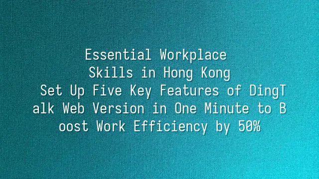 The Five Essential Features to Configure Within One Minute: After logging into the DingTalk web version, Hong Kong users should immediately activate five core features—Do Not Disturb mode, calendar synchronization, to-do lists, cloud drive integration, and voice-to-text conversion. These settings can be integrated into a personalized dashboard through the “Add to Workspace” function, reducing operational complexity and increasing daily work efficiency by over 50% (according to the 2024 Asia-Pacific Remote Work Efficiency Report). As the central control hub of DingTalk’s web interface, the workspace enables industries such as finance, education, and retail to quickly prioritize tools and optimize real-time collaboration.
