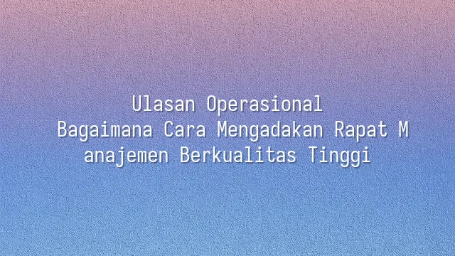 Rapat manajemen yang efisien seharusnya bukan hanya sekadar "rapat laporan", tetapi harus mendukung pengambilan keputusan dan pelaksanaan strategi.