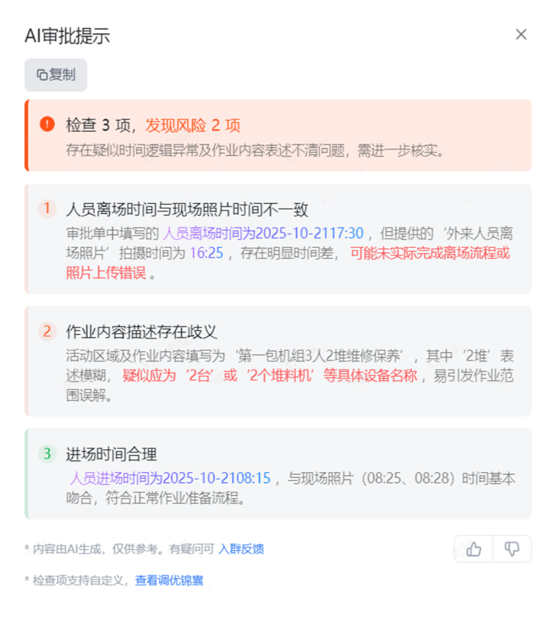 Pada Agustus 2025, “DingTalk” membantu mengintegrasikan model besar Alibaba “Qwen”, mewujudkan peninjauan awal berbasis AI: membandingkan gambar dengan informasi formulir, menandai inkonsistensi logis, menghasilkan peringatan merah, dan membantu persetujuan manual.