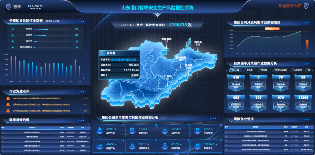 Sejak 1 Juni 2019 hingga 5 Desember 2025, sistem ZhiSun telah mendukung lebih dari 2,07 juta operasi di seluruh grup Pelabuhan Shandong, mengubah bagian-bagian berisiko tinggi yang sebelumnya bergantung pada pengalaman menjadi node-node daring yang dapat dilacak, independen namun saling terhubung. Hanya pada November 2025 saja, jumlah pemantauan operasi berisiko bulanan di seluruh grup mencapai 170 ribu kali.