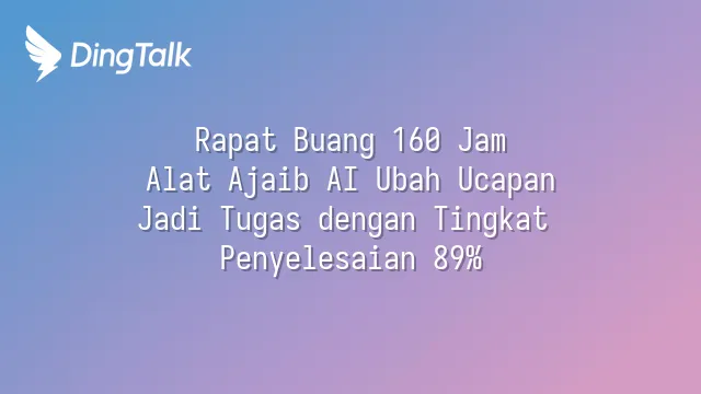 Buang 2,5 jam setiap hari hanya untuk mencari informasi? DingTalk Smart Office mengurangi 40% pekerjaan berulang melalui asisten AI dan proses otomatisasi. Dorong potensi tim Anda dan buat keputusan lebih cepat dari pesaing.