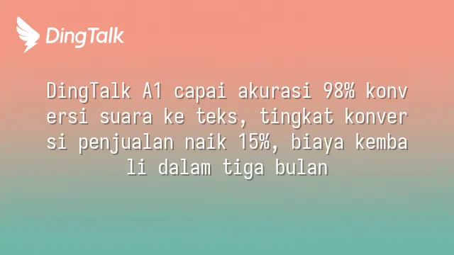 DingTalk A1 capai akurasi 98% konversi suara ke teks, tingkat konversi penjualan naik 15%, biaya kembali dalam tiga bulan