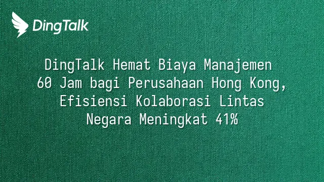 DingTalk Hemat Biaya Manajemen 60 Jam bagi Perusahaan Hong Kong, Efisiensi Kolaborasi Lintas Negara Meningkat 41%