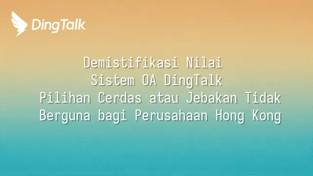 Demistifikasi Nilai Sistem OA DingTalk: Pilihan Cerdas atau Jebakan Tidak Berguna bagi Perusahaan Hong Kong