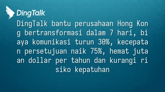 DingTalk bantu perusahaan Hong Kong bertransformasi dalam 7 hari, biaya komunikasi turun 30%, kecepatan persetujuan naik 75%, hemat jutaan dollar per tahun dan kurangi risiko kepatuhan