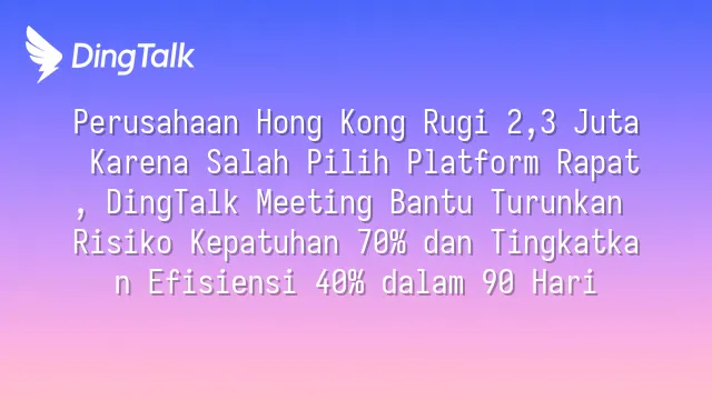 Perusahaan Hong Kong Rugi 2,3 Juta Karena Salah Pilih Platform Rapat, DingTalk Meeting Bantu Turunkan Risiko Kepatuhan 70% dan Tingkatkan Efisiensi 40% dalam 90 Hari