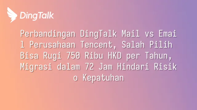 Perbandingan DingTalk Mail vs Email Perusahaan Tencent, Salah Pilih Bisa Rugi 750 Ribu HKD per Tahun, Migrasi dalam 72 Jam Hindari Risiko Kepatuhan