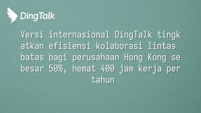 Versi internasional DingTalk tingkatkan efisiensi kolaborasi lintas batas bagi perusahaan Hong Kong sebesar 50%, hemat 400 jam kerja per tahun
