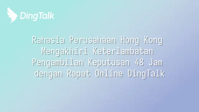 Rahasia Perusahaan Hong Kong Mengakhiri Keterlambatan Pengambilan Keputusan 48 Jam dengan Rapat Online DingTalk