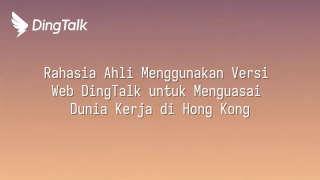 Rahasia Ahli Menggunakan Versi Web DingTalk untuk Menguasai Dunia Kerja di Hong Kong