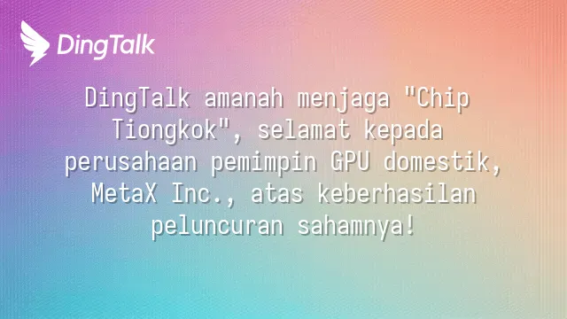 DingTalk amanah menjaga "Chip Tiongkok", selamat kepada perusahaan pemimpin GPU domestik, MetaX Inc., atas keberhasilan peluncuran sahamnya!