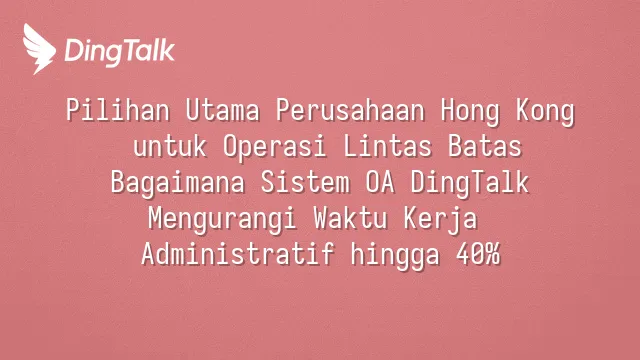Di tengah lingkungan bisnis yang serba cepat, sistem OA DingTalk menjadi mesin utama bagi perusahaan di Hong Kong untuk meningkatkan efisiensi. Mulai dari persetujuan cerdas hingga kolaborasi berbasis AI, artikel ini membongk...