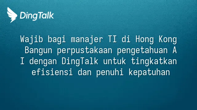 Wajib bagi manajer TI di Hong Kong: Bangun perpustakaan pengetahuan AI dengan DingTalk untuk tingkatkan efisiensi dan penuhi kepatuhan