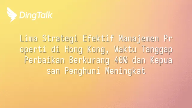 Lima Strategi Efektif Manajemen Properti di Hong Kong, Waktu Tanggap Perbaikan Berkurang 40% dan Kepuasan Penghuni Meningkat