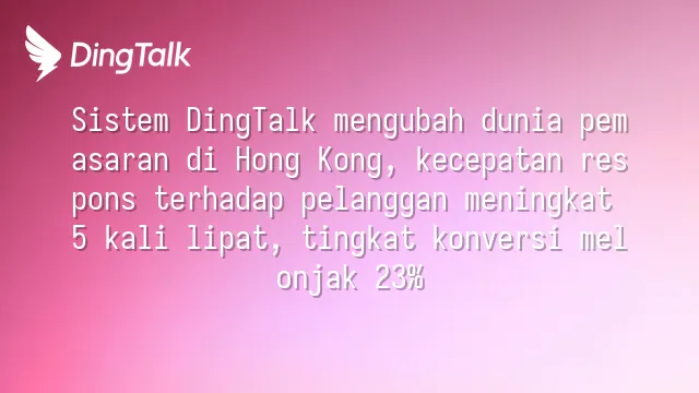 Sistem DingTalk mengubah dunia pemasaran di Hong Kong, kecepatan respons terhadap pelanggan meningkat 5 kali lipat, tingkat konversi melonjak 23%