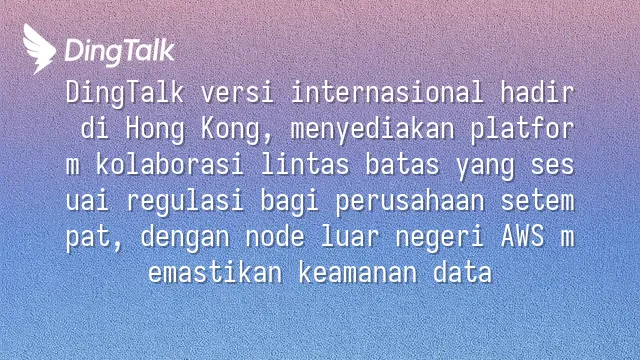 DingTalk versi internasional di Hong Kong resmi diluncurkan, menyediakan platform kolaborasi lintas batas yang memenuhi PDPO dan GDPR bagi perusahaan di Hong Kong. Dengan menggabungkan node luar negeri AWS, enkripsi end-to-en...