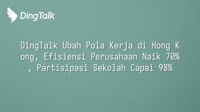 DingTalk Ubah Pola Kerja di Hong Kong, Efisiensi Perusahaan Naik 70%, Partisipasi Sekolah Capai 98%