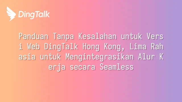 Ingin menggunakan versi web DingTalk dengan mudah di Hong Kong? Panduan bebas kesalahan ini dirancang khusus untuk pengguna lokal, mencakup empat aspek utama: pendaftaran, kolaborasi, kehadiran, dan keamanan data, membantu An...