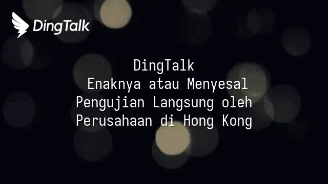 DingTalk: Enaknya atau Menyesal? Pengujian Langsung oleh Perusahaan di Hong Kong