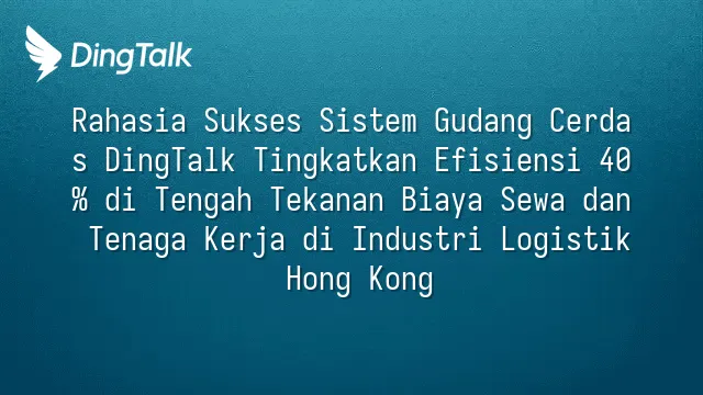 Rahasia Sukses Sistem Gudang Cerdas DingTalk Tingkatkan Efisiensi 40% di Tengah Tekanan Biaya Sewa dan Tenaga Kerja di Industri Logistik Hong Kong