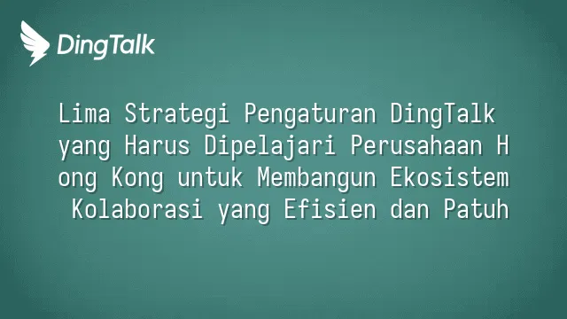 Lima Strategi Pengaturan DingTalk yang Harus Dipelajari Perusahaan Hong Kong untuk Membangun Ekosistem Kolaborasi yang Efisien dan Patuh