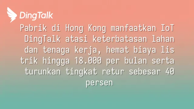 Pabrik di Hong Kong manfaatkan IoT DingTalk atasi keterbatasan lahan dan tenaga kerja, hemat biaya listrik hingga 18.000 per bulan serta turunkan tingkat retur sebesar 40 persen
