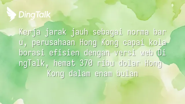 Kerja jarak jauh sebagai norma baru, perusahaan Hong Kong capai kolaborasi efisien dengan versi web DingTalk, hemat 370 ribu dolar Hong Kong dalam enam bulan