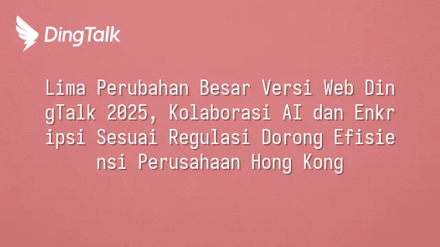 Lima Perubahan Besar Versi Web DingTalk 2025, Kolaborasi AI dan Enkripsi Sesuai Regulasi Dorong Efisiensi Perusahaan Hong Kong