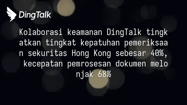 Kolaborasi keamanan DingTalk tingkatkan tingkat kepatuhan pemeriksaan sekuritas Hong Kong sebesar 40%, kecepatan pemrosesan dokumen melonjak 68%