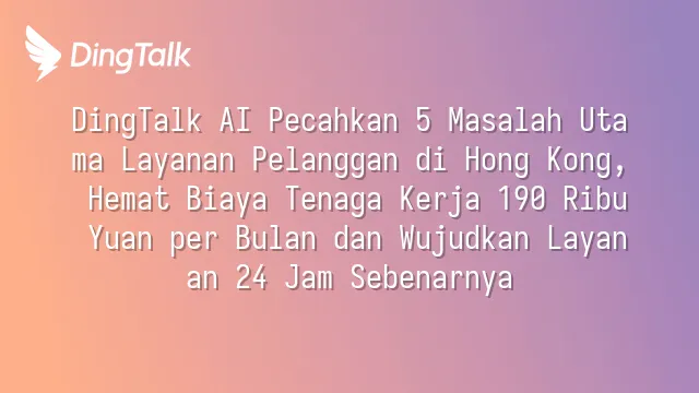DingTalk AI Pecahkan 5 Masalah Utama Layanan Pelanggan di Hong Kong, Hemat Biaya Tenaga Kerja 190 Ribu Yuan per Bulan dan Wujudkan Layanan 24 Jam Sebenarnya
