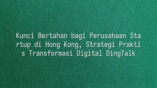 Kunci Bertahan bagi Perusahaan Startup di Hong Kong, Strategi Praktis Transformasi Digital DingTalk
