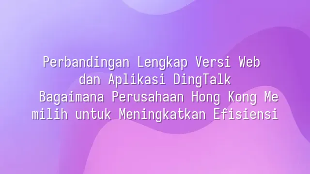 Perbandingan Lengkap Versi Web dan Aplikasi DingTalk: Bagaimana Perusahaan Hong Kong Memilih untuk Meningkatkan Efisiensi