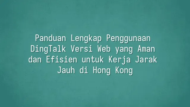 Panduan Lengkap Penggunaan DingTalk Versi Web yang Aman dan Efisien untuk Kerja Jarak Jauh di Hong Kong