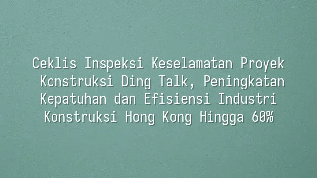 Ceklis Inspeksi Keselamatan Proyek Konstruksi Ding Talk, Peningkatan Kepatuhan dan Efisiensi Industri Konstruksi Hong Kong Hingga 60%