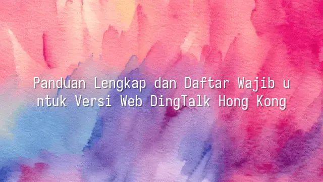 Panduan Lengkap dan Daftar Wajib untuk Versi Web DingTalk Hong Kong