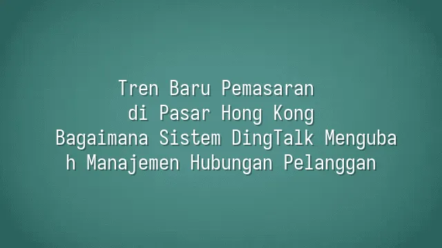 Tren Baru Pemasaran di Pasar Hong Kong: Bagaimana Sistem DingTalk Mengubah Manajemen Hubungan Pelanggan