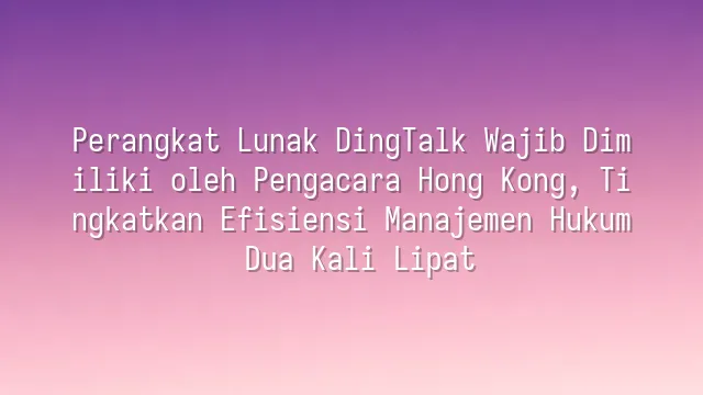 Perangkat Lunak DingTalk Wajib Dimiliki oleh Pengacara Hong Kong, Tingkatkan Efisiensi Manajemen Hukum Dua Kali Lipat