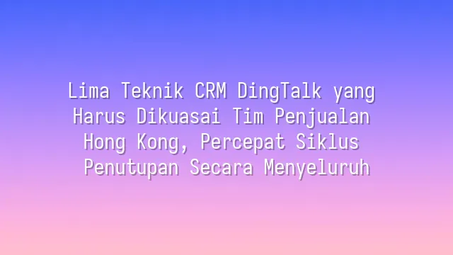 Di tengah persaingan yang ketat, bagaimana tim penjualan Hong Kong memanfaatkan tips penggunaan alat CRM DingTalk untuk menembus batas pertumbuhan? Artikel ini mengungkap lima strategi efektif yang telah terbukti oleh perusah...