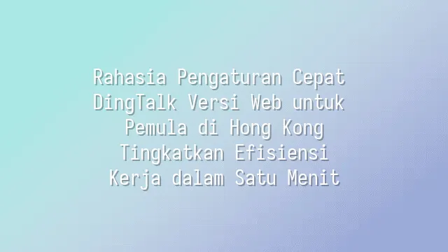 Rahasia Pengaturan Cepat DingTalk Versi Web untuk Pemula di Hong Kong: Tingkatkan Efisiensi Kerja dalam Satu Menit