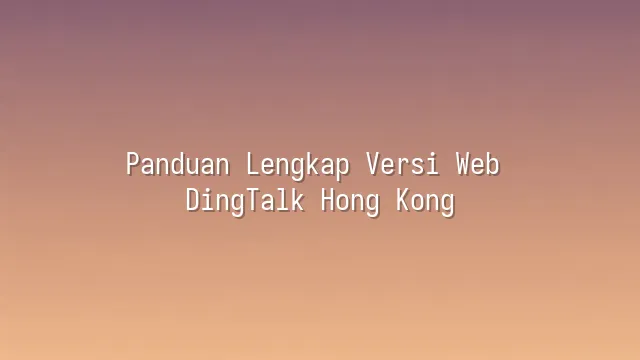 Panduan Lengkap Versi Web DingTalk Hong Kong