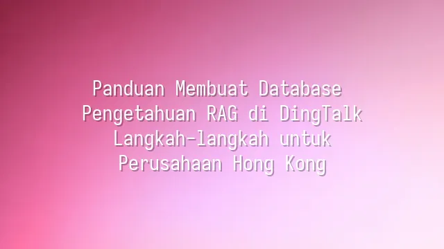 Panduan Membuat Database Pengetahuan RAG di DingTalk: Langkah-langkah untuk Perusahaan Hong Kong