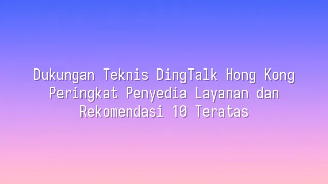 Dukungan Teknis DingTalk Hong Kong: Peringkat Penyedia Layanan dan Rekomendasi 10 Teratas