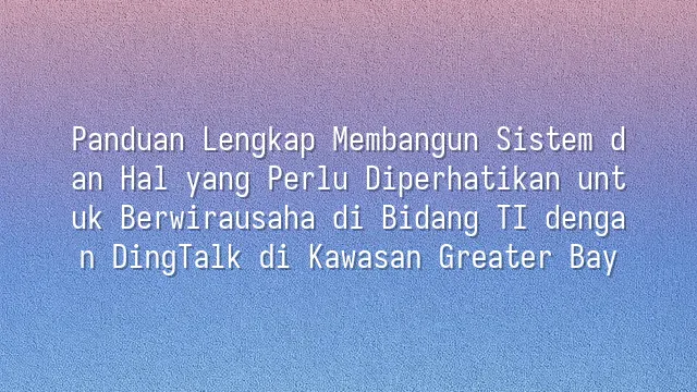 Panduan Lengkap Membangun Sistem dan Hal yang Perlu Diperhatikan untuk Berwirausaha di Bidang TI dengan DingTalk di Kawasan Greater Bay