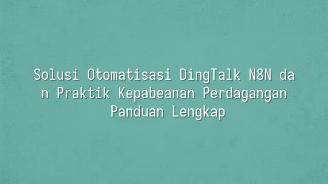 Solusi Otomatisasi DingTalk N8N dan Praktik Kepabeanan Perdagangan: Panduan Lengkap