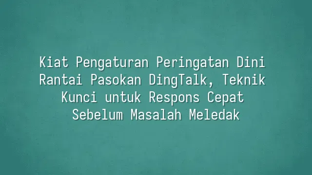 Kiat Pengaturan Peringatan Dini Rantai Pasokan DingTalk, Teknik Kunci untuk Respons Cepat Sebelum Masalah Meledak
